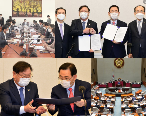 더불어민주당 김태년· 국민의힘 주호영 원내대표는 22일 국회에서 회동하고 이같이 합의