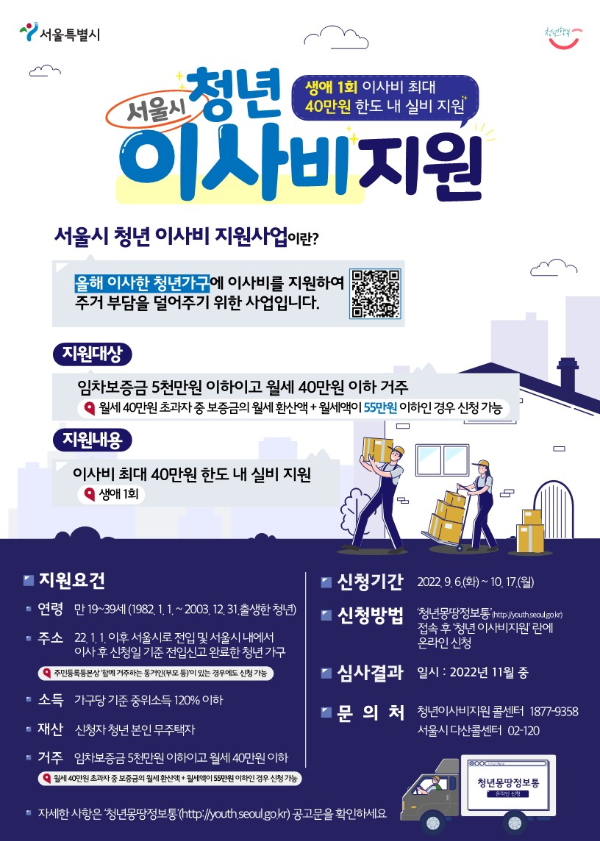 지원내용 : 최대 40만원 한도 안에서 이사비 전액 지원