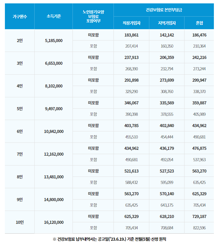 ’23년 기준 건강보험료 본인부담 부과액(기준 중위소득 150%이하)