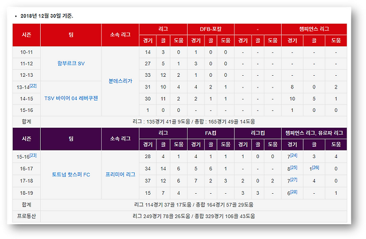 손흥민 주요기록