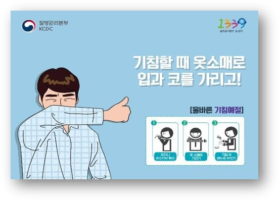 1. 비누를 사용해 30초 동안 손을 자주 씻고, 휴지나 옷소매로 입과 코를 가리는 기침예절를 준수합LI다.