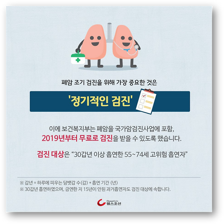 ※ 2019년 7월부터 국가암검진사업에 폐암 검진을 포함 ,대상자 선정 기준 추후 확정 예정